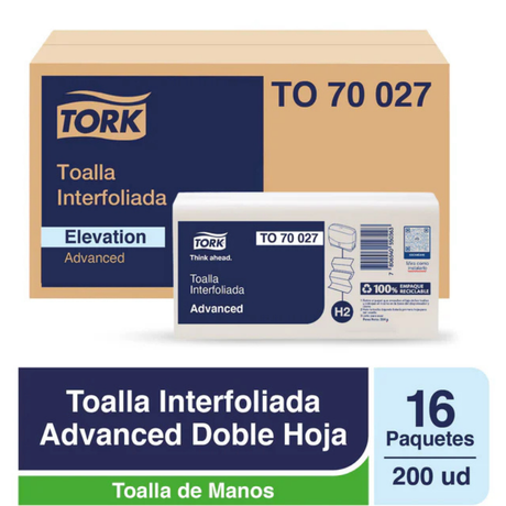 Precio normal $0Precio unitario /AgotadoTO70027 TORK ADVANCED TOALLA INTERFOLIADA D/H 16X200 HJ