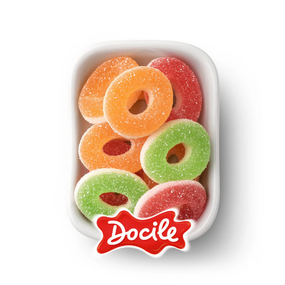 Deliciosas gomitas en forma de aro, con sabores cítricos intensos y refrescantes. Suaves, azucaradas y divertidas, ideales para compartir o disfrutar en cualquier momento.