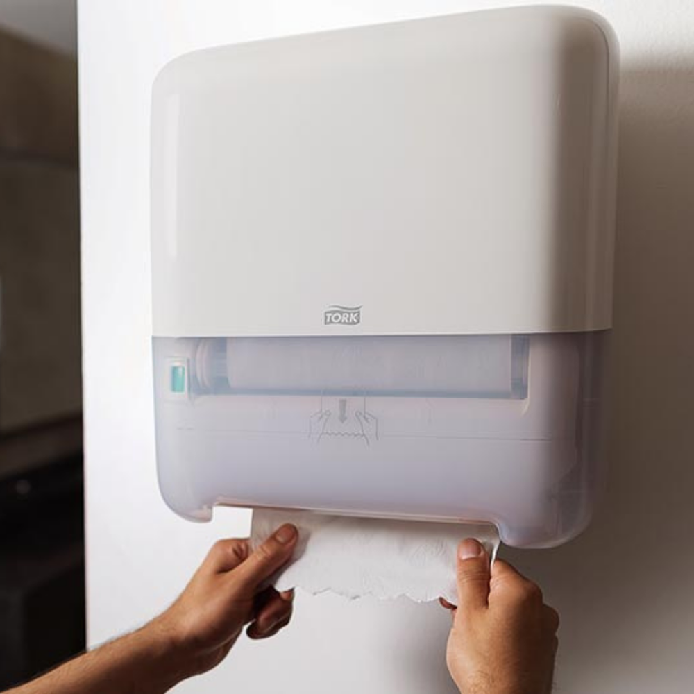 El dispensador Tork Elevation está pensado para espacios modernos que buscan higiene, estilo y practicidad. Su sistema H1 permite una dosificación controlada, entregando una toalla por vez para reducir el consumo y mantener la limpieza.