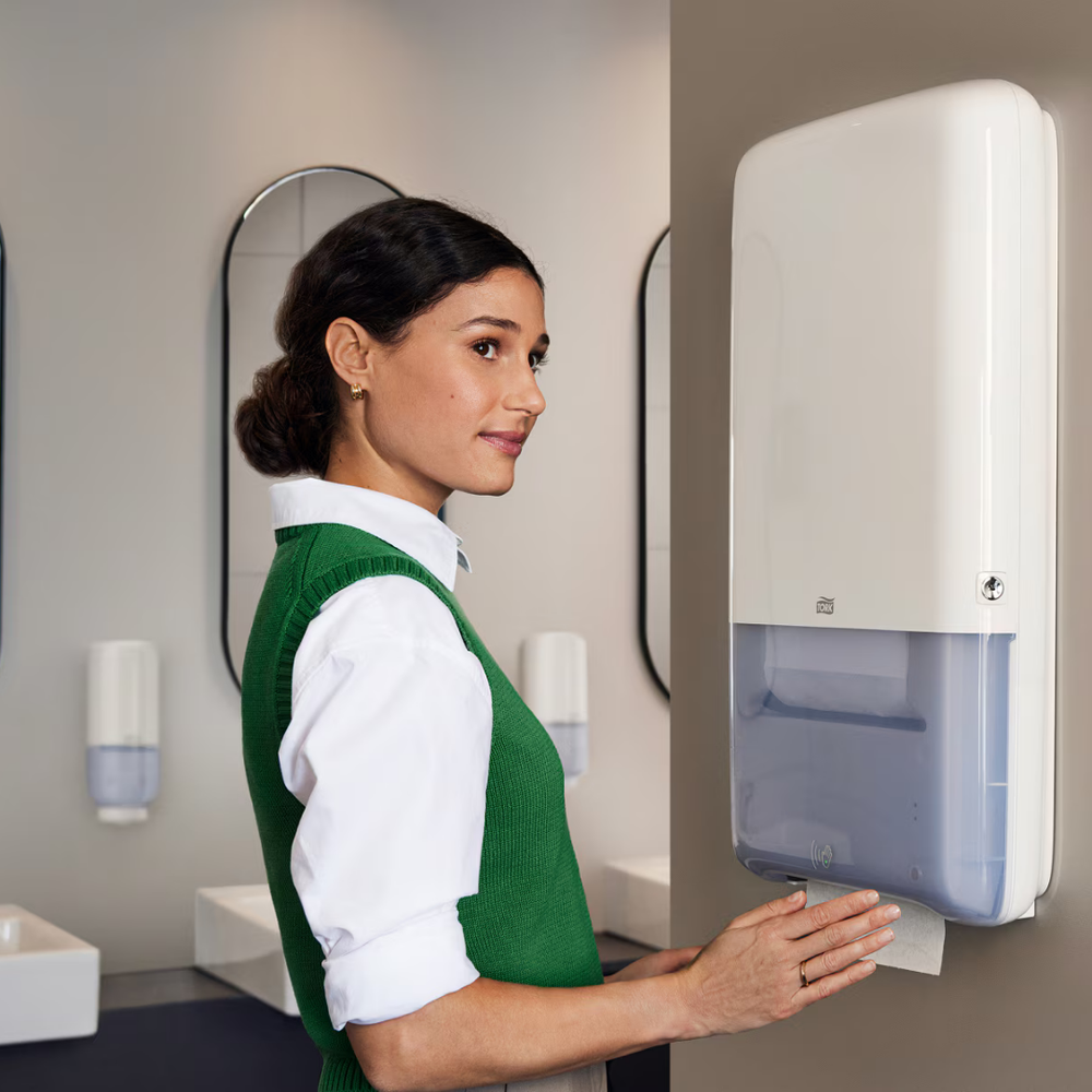 El dispensador de toalla Tork PeakServe Maxi está diseñado para entornos de alto tránsito donde la higiene y la rapidez son esenciales. Con su innovador sistema de flujo continuo, ofrece dispensado sin interrupciones, reduciendo esperas y manteniendo la limpieza siempre bajo control.