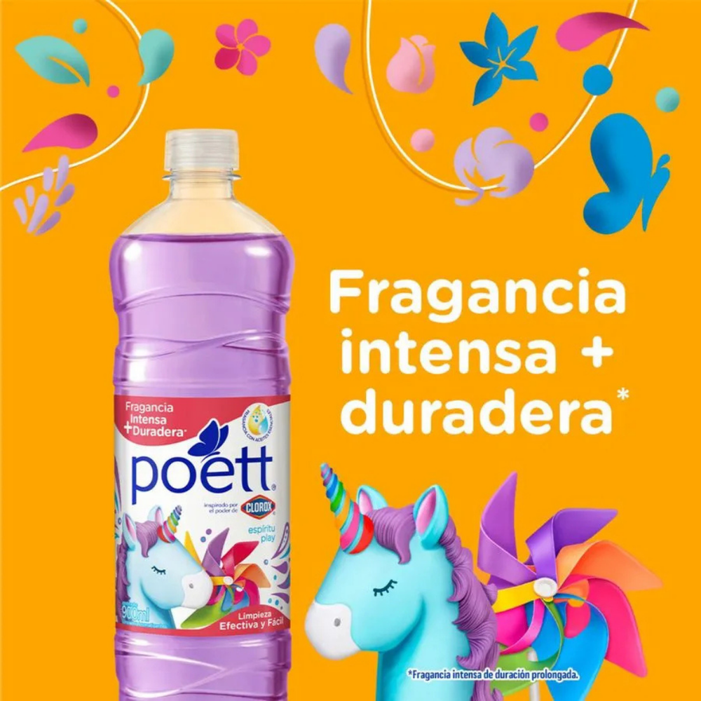 El Limpiador de Pisos Poett Espíritu Play 900cc llena tu hogar de frescura, color y aroma vibrante.