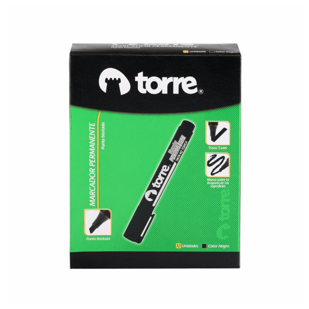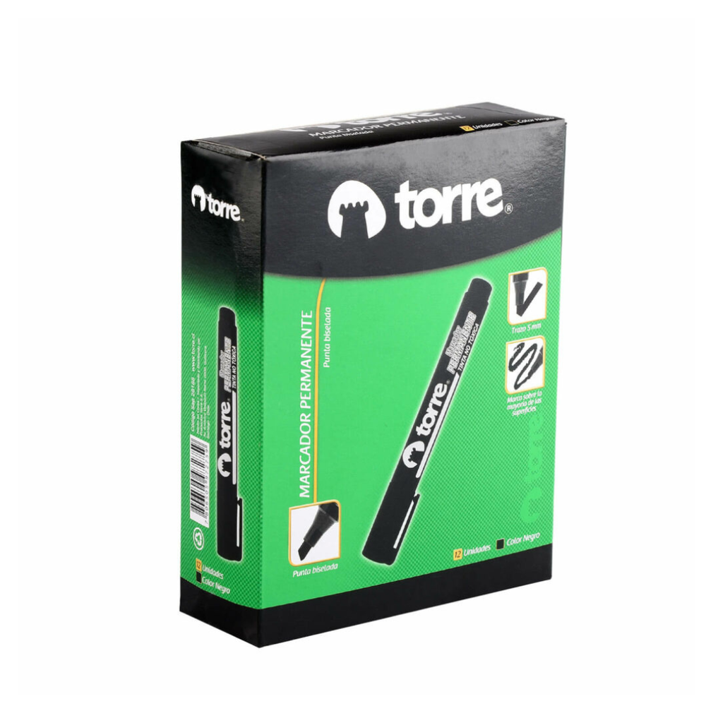 ¡Marca con potencia y precisión con el Marcador Permanente Torre Negro punta biselada! 🖊️🖤