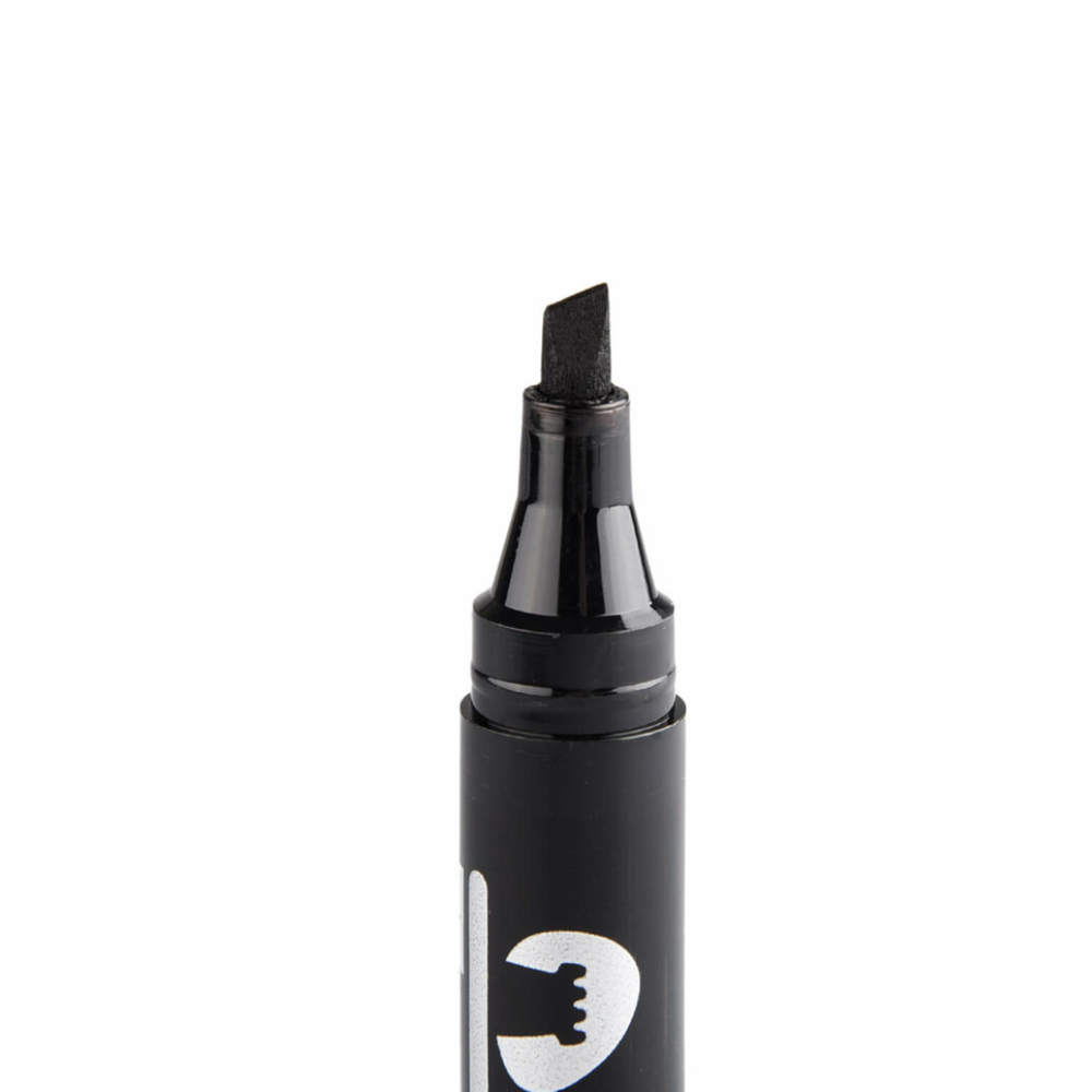 Ideal para rotular, etiquetar y destacar en casi cualquier superficie: cartón, plástico, vidrio, madera y más. Su punta biselada te permite hacer trazos finos o gruesos según la inclinación, perfecto para oficina, bodega, colegio o hogar.