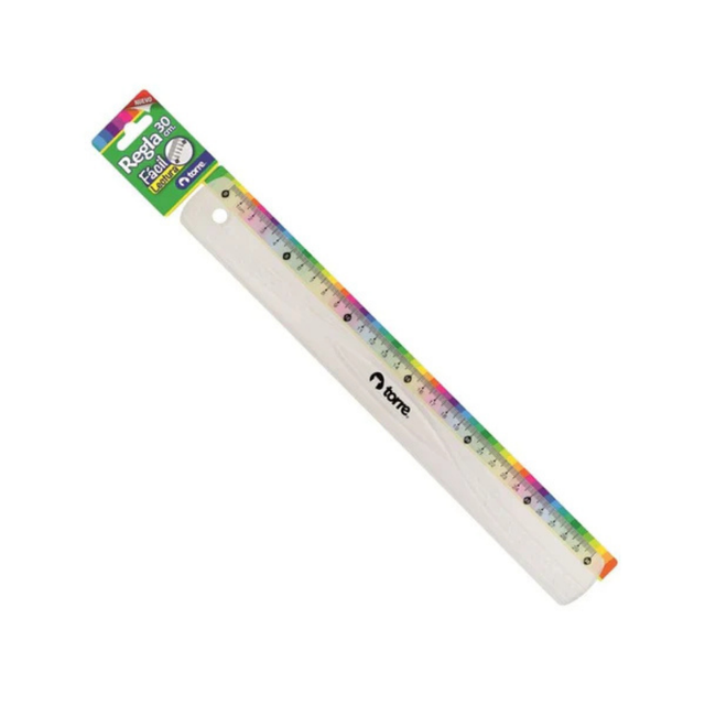 Regla plástica Torre de 30 cm, ideal para colegio, oficina y manualidades. Liviana, resistente y con marcación clara para medir y trazar con precisión.