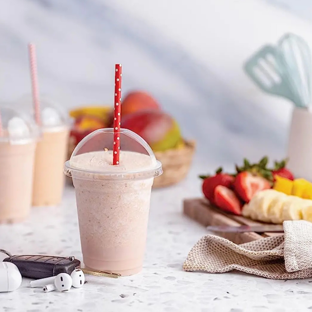 La tapa domo PET con hoyo 92 mm para vaso 12/20 oz (1x100 unidades) es ideal para complementar tus bebidas frías con una presentación práctica y atractiva. Fabricada en PET transparente de alta resistencia, permite visualizar el contenido y ofrece comodidad al consumir con bombilla.
